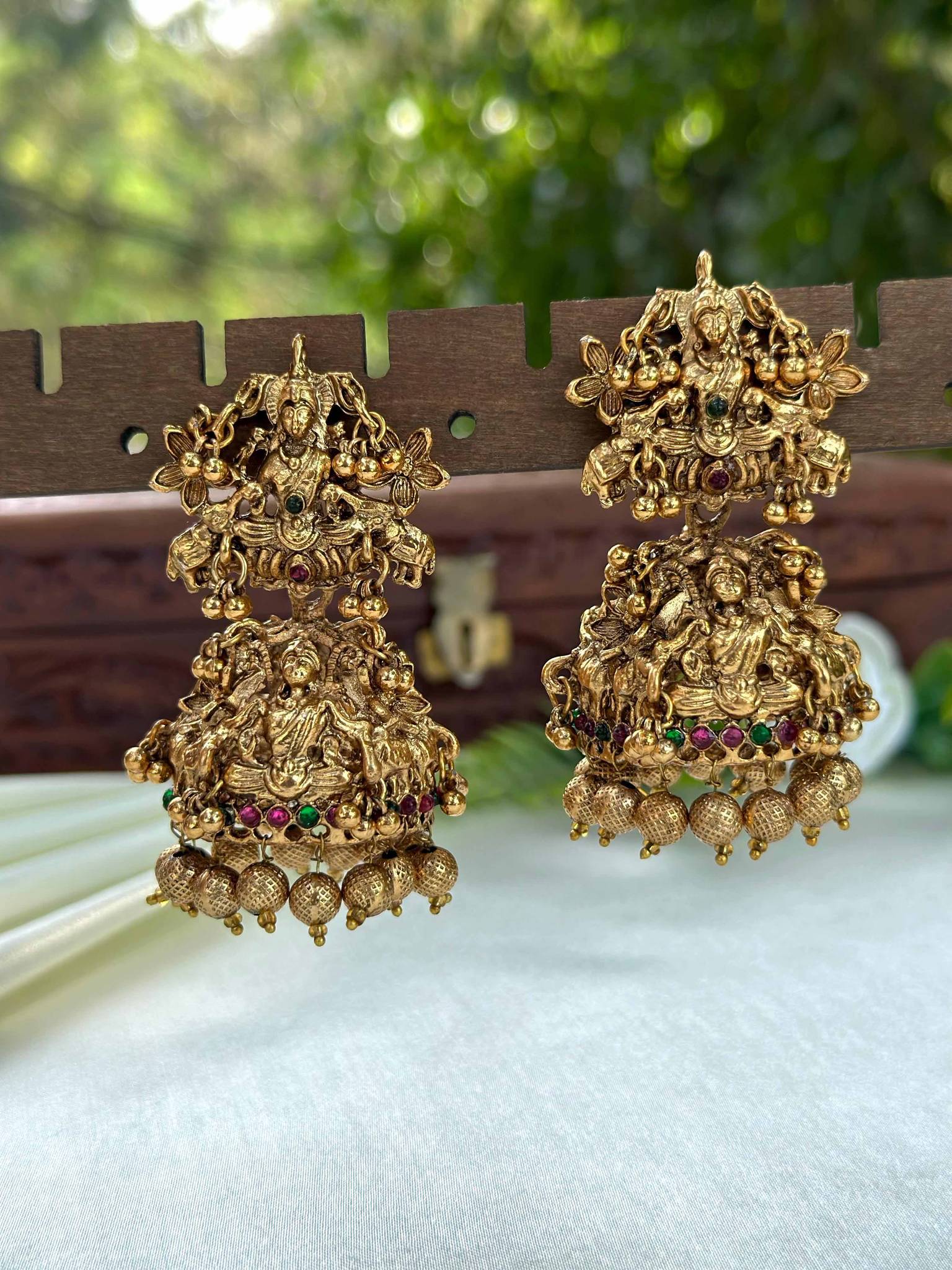 Affordable Atique Big Size Weight jhumka, With Pink and Green stones...